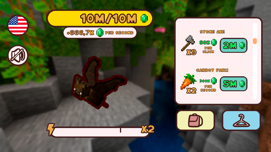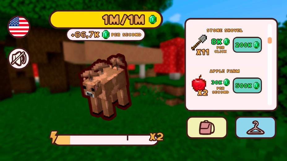 Você ganha upgrades coletando moedas através de seus cliques. Quanto mais você clica, mais rápido você pode atualizar seus mobs!