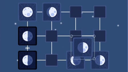 Use seu mouse ou touchpad para clicar e arrastar as fases lunares para o tabuleiro. O botão esquerdo do mouse ou um toque é usado para selecionar e posicionar as fases. Cada movimento é crucial, então planeje cuidadosamente para maximizar sua vantagem estratégica. Os controles são intuitivos, permitindo que os jogadores se concentrem em desenvolver sua estratégia cósmica.