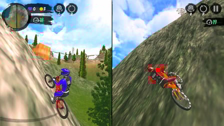 MTB Downhill Extreme inclui os modos single-player e two-player, permitindo que os jogadores desfrutem de aventuras solo ou compitam com amigos.