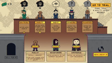 Basta clicar ou tocar nos jurados para selecioná-los e tomar decisões estratégicas para avançar no julgamento. Use atalhos para seleções rápidas e gerencie seus recursos de forma eficaz.