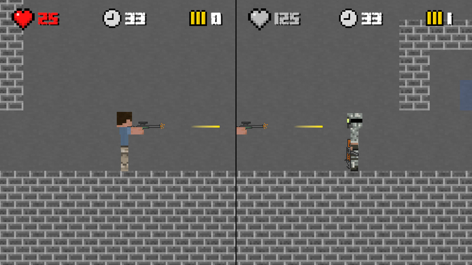 Noob vs Pro: War é um jogo de ação emocionante projetado para dois jogadores, onde você pode se envolver em batalhas emocionantes usando uma variedade de armas poderosas. Jogue online gratuitamente sem baixar e mergulhe no intenso mundo da guerra estratégica. O jogo coloca dois personagens icônicos, Nubik (Jogador #1) e Pro (Jogador #2), um contra o outro em uma série de rodadas, cada uma com duração de dois minutos. Os jogadores podem se armar com diversas armas e armaduras da loja do jogo para serem mais espertos e superarem seus oponentes. Cada arma possui características únicas, como dano, velocidade da bala e alcance da bala, adicionando camadas de estratégia a cada encontro. O jogo também conta com um bônus especial que aparece no início de cada rodada no porão, oferecendo uma vantagem ao jogador que o apreende primeiro. Quer você saia vitorioso ou a rodada termine empatada, a adrenalina nunca Para neste confronto épico. Bom jogo!
