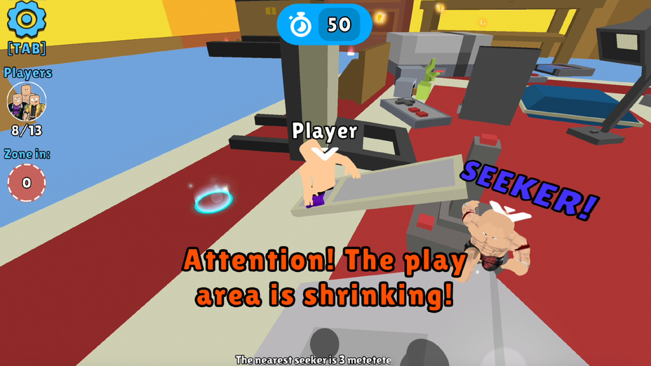 Para hiders: utilize o mouse para se movimentar e navegar pelo mundo. Toque ou clique para interagir com itens e encontrar esconderijos obscuros. Para buscadores: use as teclas de seta ou deslize no seu dispositivo móvel para se mover rapidamente. Procure jogadores habilmente escondidos pela sala e não se esqueça de usar os recursos de teletransporte para aprimorar sua estratégia de busca!