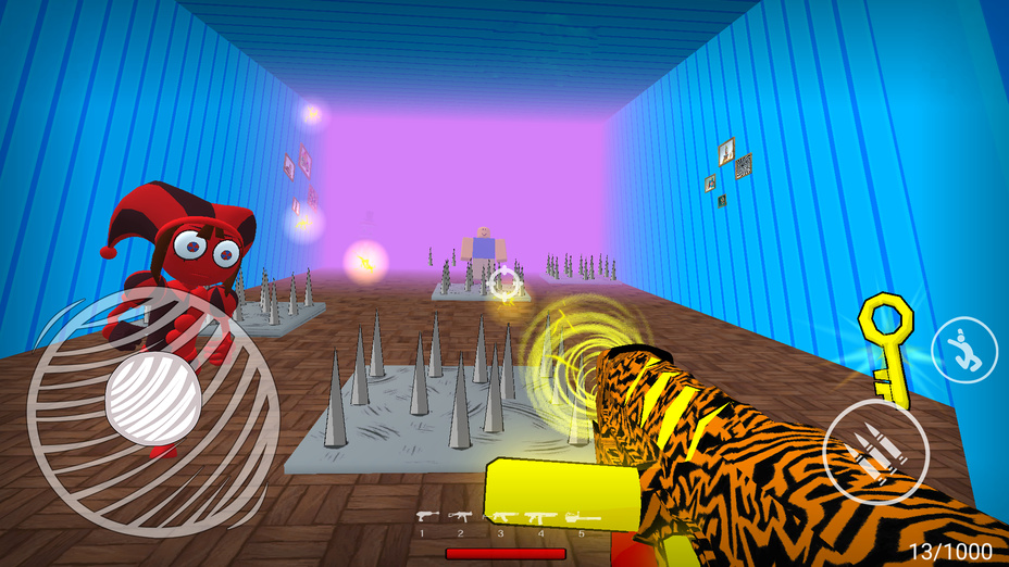 Em Invasão Obby no Circo Digital, você se encontra em um circo digital surreal invadido por habitantes enlouquecidos e monstros digitais. Como protagonista, sua missão é navegar neste ambiente caótico, usando uma variedade de armas para derrotar os inimigos e restaurar a ordem. A mistura única do jogo de mecânica de tiro e geração de níveis sem fim garante que não haja duas jogadas iguais, mantendo a jogabilidade fresca e emocionante.