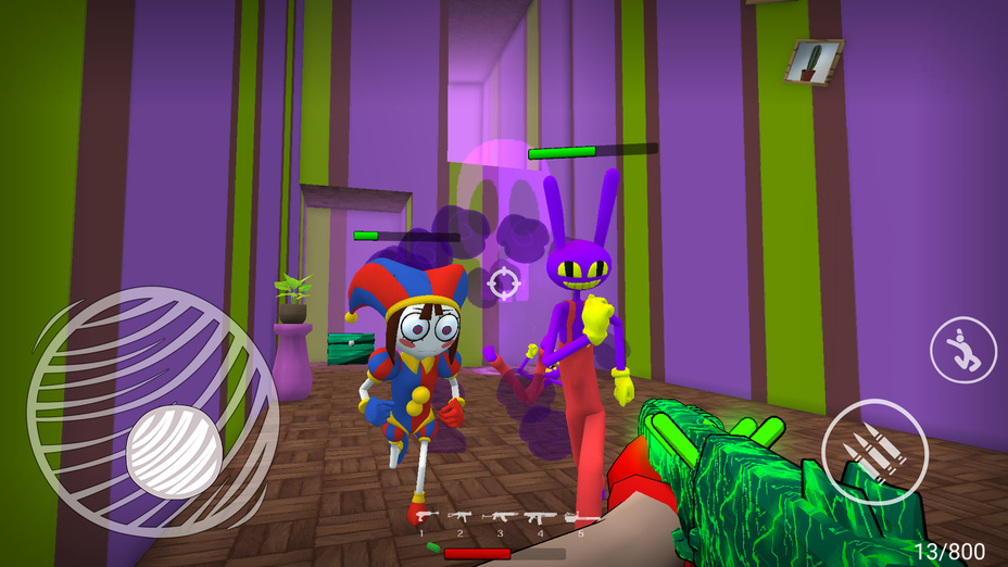 Invasão Obby no Circo Digital. Atirador! é um emocionante jogo de tiro online com uma geração infinita de níveis emocionantes, onde você deve se tornar um herói e salvar o mundo da invasão de monstros digitais. Ambientado em um circo digital caótico e destrutivo, você deve restaurar a ordem e a sanidade entre seus habitantes, incluindo o frenético Obby. Participe de batalhas intensas com várias armas à sua disposição, utilizando suas habilidades e reflexos rápidos para sobreviver e sair vitorioso.