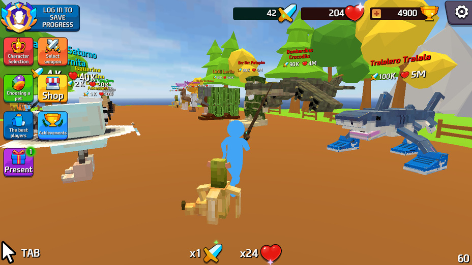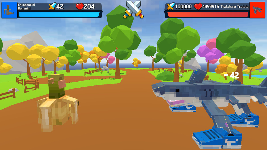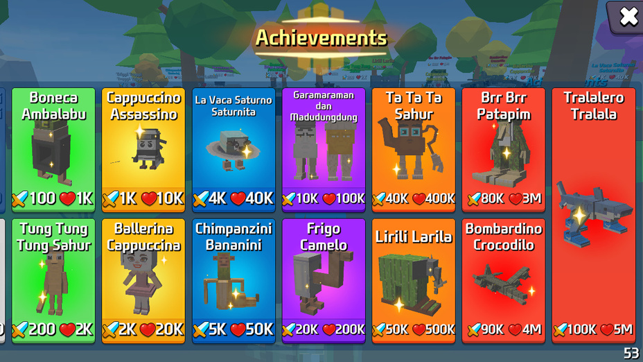Você pode selecionar entre um elenco de hilários animais de meme únicos, cada um com suas características e habilidades distintas. Personagens como Trippi Troppi e La Vaca Saturno oferecem diferentes estilos de jogabilidade!