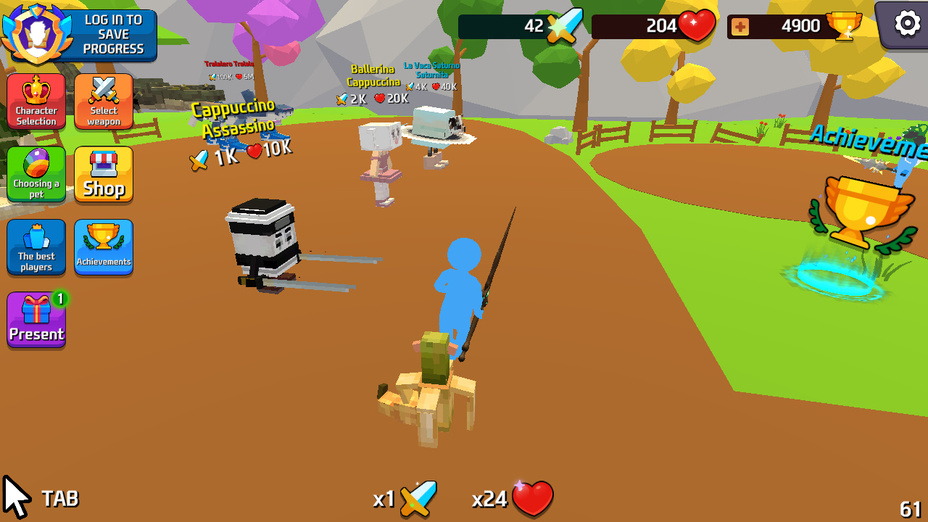 Começar com Obby: Italian Animal Battle é simples! Inicie em seu computador acessando o link fornecido. Para usuários móveis, basta acessar o site de qualquer telefone e você estará pronto para mergulhar na ação. Escolha seu avatar animal e use os botões na tela ou as setas do teclado para participar de batalhas malucas!