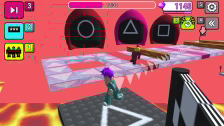 Jogando Obby: Squid Game Tower é simples e envolvente. Em seu computador, use as setas do teclado para navegar pelo seu personagem. Se preferir usar um dispositivo móvel, toque e arraste para controlar seus movimentos. Cada estágio exige que você desvie de obstáculos, resolva quebra-cabeças intrigantes e utilize suas habilidades de parkour de forma eficaz. Confie no raciocínio rápido e no seu talento para resolver desafios para avançar pela torre!