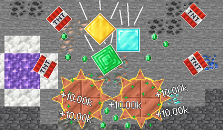 Para uma jogabilidade tranquila, basta usar o mouse ou tocar na tela para realizar ações. Melhorar é uma questão de clicar em botões para selecionar suas melhorias desejadas, enquanto as explosões de TNT são ativadas automaticamente para aprimorar sua experiência de trituração de blocos.