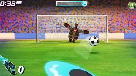 - Experimente diferentes ângulos para enganar o goleiro e marcar o máximo de gols possível.
