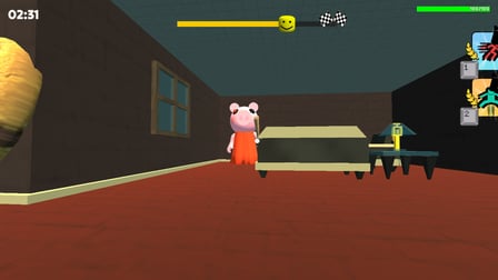 Em Piggy: Obby Escape, assuma o papel de um estudante em uma missão para ser mais esperto que o porquinho ameaçador que não está feliz com sua tarefa esquecida de lavar pratos. Seu principal objetivo é navegar por um labirinto de desafios de parkour intrincadamente projetados, cada um mais difícil que o anterior. Com dezenas de níveis definidos em locais únicos, você encontrará vários obstáculos que testam seus reflexos rápidos e pensamento estratégico. Apresentando uma perspectiva em primeira pessoa, o jogo mergulha os jogadores em um ambiente dinâmico onde cada movimento conta. É perfeito para aqueles que apreciam desafios baseados em agilidade e é adequado para adolescentes que amam a emoção dos jogos de terror e arcade.