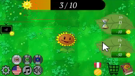 O mecanismo de controle primário é simples: basta tocar ou clicar para coletar sóis. Você também pode navegar por uma interface de usuário simples para desbloquear plantas e verificar seu progresso.