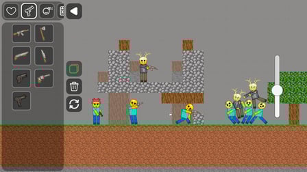 Jogar Playground 99 Nights Simulator é simples! No computador, utilize o mouse para arrastar e soltar blocos, adicionar personagens e controlar as armas. Para jogar no seu telefone, toque na tela para acessar as opções de construção e ajuste os elementos com o toque.