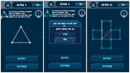\nOs controles são simples: em um desktop, use seu mouse para clicar e arrastar, criando uma linha contínua entre os pontos. No celular, toque no primeiro nó e arraste seu dedo para conectá-los sem levantar.