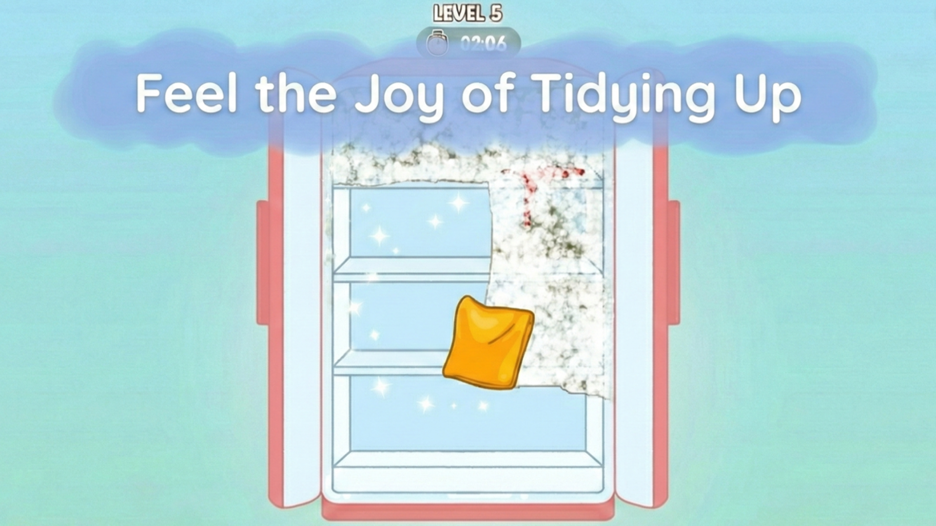 Você começará alguns níveis enfrentando uma superfície suja. Arraste seu dedo (ou mouse) na tela usando um pano virtual para apagar sujeira, geada ou poeira. A textura desaparece como um cartão raspadinha, revelando prateleiras ou compartimentos imaculados por baixo. Continue arrastando até que a área toda brilhe.