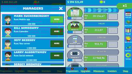 Use o mouse para clicar na tela e gerar código. Para usuários móveis, basta tocar para começar a codificar. À medida que desenvolve suas habilidades, utilize a interface integrada para contratar programadores, comprar melhorias e otimizar seu gameplay.