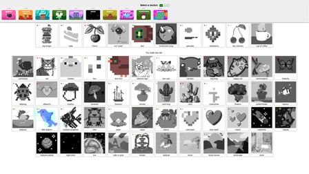 No computador, clique nos quadrados coloridos da paleta para selecioná-los e, em seguida, aponte o mouse para os pixels correspondentes na imagem. No celular, toque na sua escolha de cor e, em seguida, toque nos quadrados de pixel que deseja preencher. A simplicidade desses controles facilita a coloração.