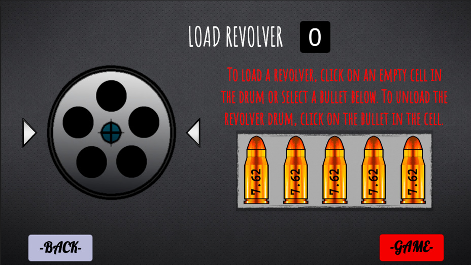 Navegue pelo jogo usando seu mouse para selecionar seu revólver e clique para girar o tambor. Quando for sua vez, clique no botão do gatilho para puxar o gatilho, ativando a expectativa!
