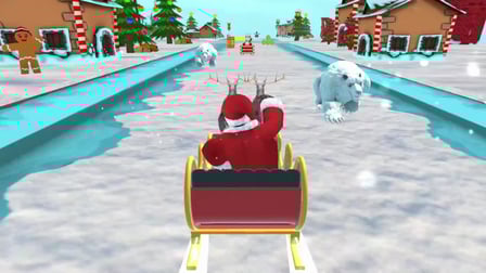 Use as teclas de seta ou gestos de deslizar para guiar o trenó do Papai Noel pelos céus invernais. A barra de espaço ou a função de toque permite que você entregue presentes nas chaminés. Colete power-ups voando através deles, melhorando as habilidades do seu trenó e tornando sua viagem ainda mais suave.
