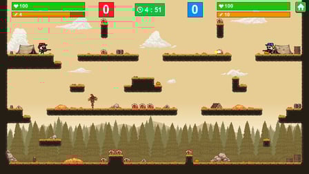 Shootout for Two é um jogo de ação emocionante projetado para dois jogadores se envolverem em batalhas intrigantes. Mergulhe neste jogo de navegador cheio de adrenalina, sem downloads ou registros, e experimente a emoção de um confronto tático. Escolha um dos seis mapas elaborados e equipe-se com uma das doze armas espalhadas aleatoriamente para superar e enganar seu oponente. Jogue com um amigo no mesmo computador e mostre suas habilidades para vencer. Este jogo dinâmico promete diversão e emoção sem limites, perfeito para jogos em festas ou um duelo casual com amigos.