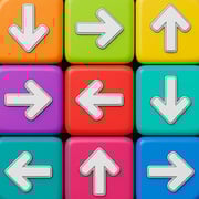 Encontre um bloco com seta. Toque nele. O bloco dispara naquela direção e desaparece, se o caminho estiver livre. Obstáculo no caminho? Nada acontece. Ordem errada? Preso. Pense antes de tocar. Cada nível é um mini quebra-cabeça. A direção da seta importa. A lógica de frente para trás rege tudo.