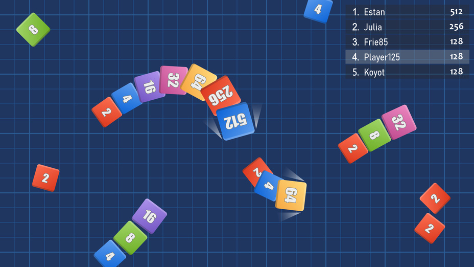 Atualmente, Snake Arena 2048 é uma experiência single-player. No entanto, você pode desafiar seus amigos para bater sua pontuação mais alta!