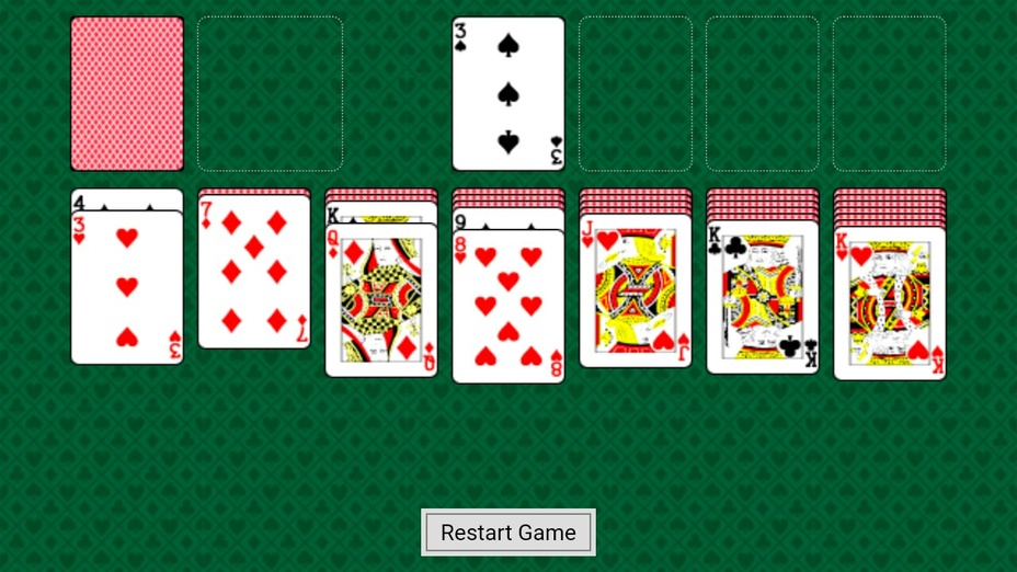 Solitaire é um jogo de cartas para um jogador onde o objetivo é mover todas as cartas para as pilhas de Fundação, organizadas por naipe e em ordem crescente de Ás a Rei. O jogo começa com um baralho embaralhado de 52 cartas distribuídas em sete colunas do tabuleiro. Os jogadores devem mover estrategicamente as cartas entre as colunas e a Fundação para revelar as cartas escondidas e completar o jogo. Suas regras simples e jogabilidade envolvente fazem do Solitaire uma escolha perfeita para jogadores casuais e sérios.