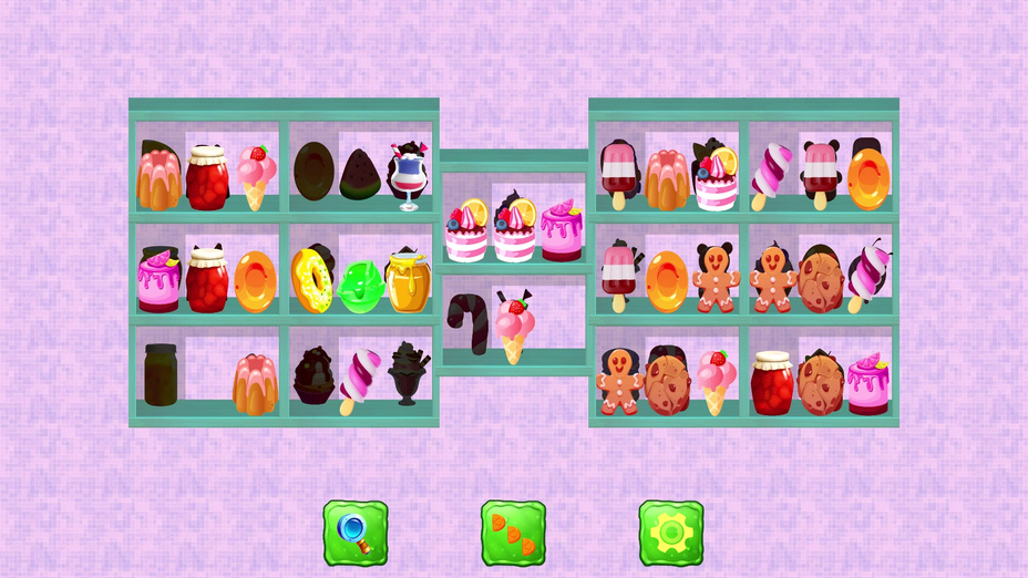 - Use o mouse ou a ponta do dedo para arrastar e soltar doces na prateleira correspondente.