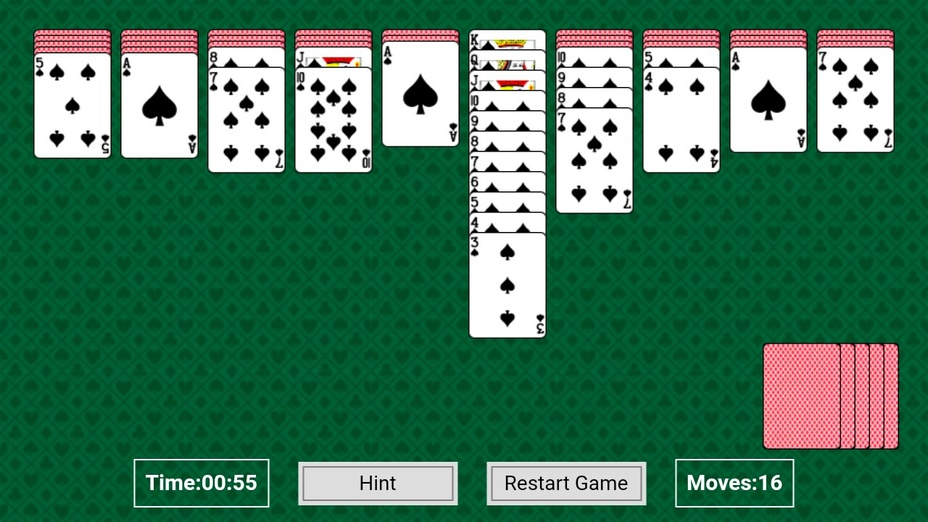 - Complete uma sequência completa (rei até ás) para removê-lo do tabuleiro.