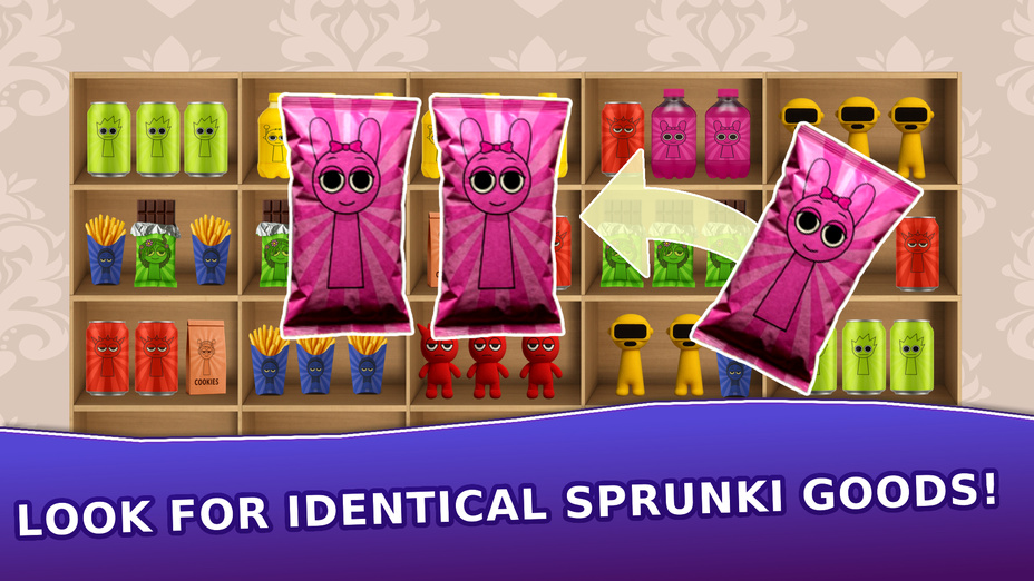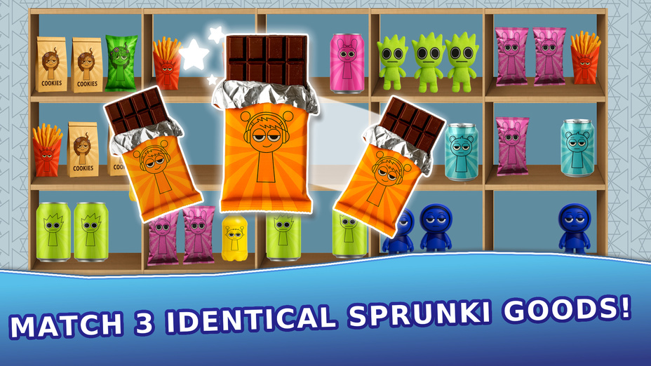 O jogo é fácil de aprender: em um computador, clique nos itens e arraste-os para as prateleiras, colocando brinquedos e snacks idênticos lado a lado. Em um dispositivo móvel, simplesmente toque nos itens para relocá-los. Trabalhe para conectar três ou mais personagens Sprunki idênticos para marcar pontos e desbloquear novas funcionalidades.