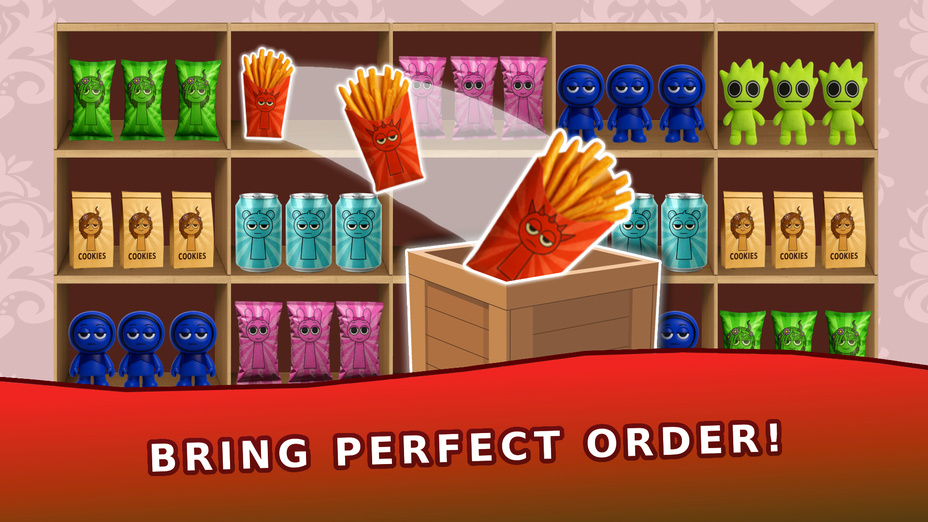 Mergulhar em Sprunki Goods: Sorting Games é seu ingresso para uma experiência encantadora onde você pode se deliciar em um mundo de adoráveis personagens Sprunki e mecânicas divertidas de organização. Este jogo gratuito baseado em navegador convida os jogadores a se envolver em uma jogabilidade criativa ao classificar diversos produtos Sprunki em prateleiras coloridas.