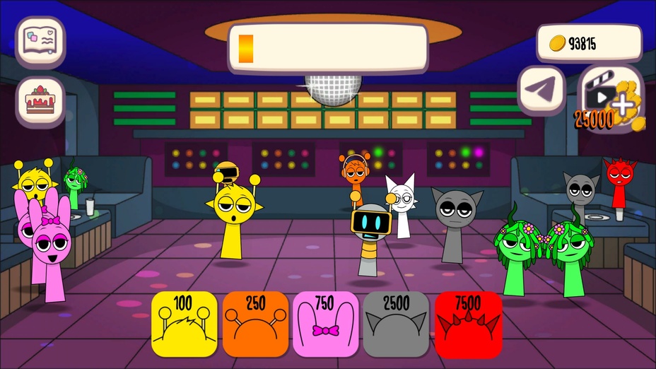 Uma vez cheio, a festa explode em celebração e moedas caem do teto, recompensando você por cada Sprunkie na pista de dança!