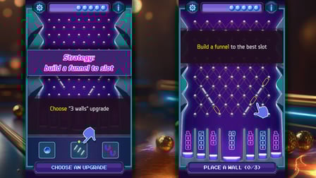 Em Estratégia da Sorte, você é o arquiteto de seu próprio destino. O jogo permite que você coloque vários elementos no tabuleiro para criar uma configuração que levará a altas pontuações. O uso de paredes, ímãs, teletransportes e Clonadores adiciona camadas de complexidade e emoção ao jogo. Cada elemento interage de forma diferente, e sua tarefa é criar as combinações mais eficientes e de alta pontuação. O design visual e interativo do jogo garante que não haja dois jogos iguais, mantendo a jogabilidade fresca e envolvente.