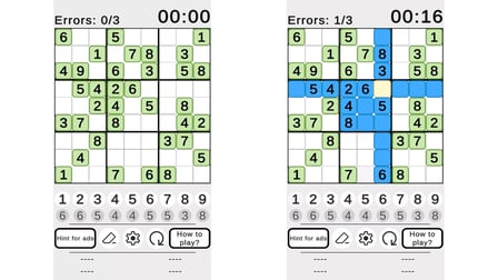 Usando o mouse ou toque, clique ou toque em uma célula para começar. Para inserir números, basta digitar no seu teclado para selecionar o número que você acredita que deve se encaixar ou optar pelo teclado numérico na tela para fazer seleções. Se você decidir mudar um número, basta selecionar a célula e digitar um novo número!