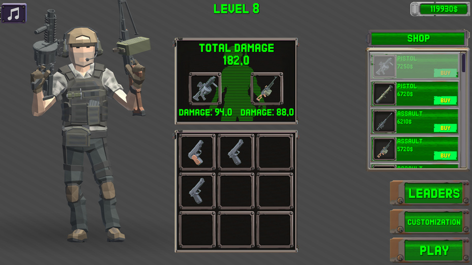 Existem inúmeras armas disponíveis, variando de armas de fogo simples a armamentos únicos e avançados. Cada combinação gera resultados novos e empolgantes!
