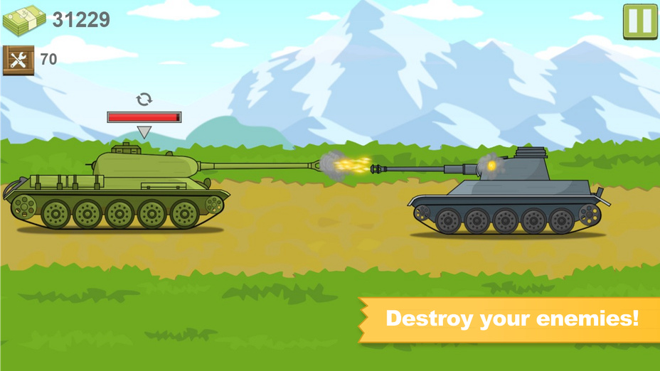 Tanques 2D: Batalha! é um emocionante jogo de ação arcade onde você mergulha no calor da verdadeira guerra de tanques. Atualize seu tanque e prepare-se para uma guerra total enquanto luta contra inimigos ferozes e chefes formidáveis. Jogue online gratuitamente, sem necessidade de download, e experimente uma jogabilidade de alta qualidade diretamente no seu navegador. Mergulhe no campo de batalha sem fim e libere suas proezas estratégicas. Esteja você no seu desktop ou dispositivo móvel, Tanks 2D: Battle! proporciona uma experiência cheia de adrenalina que testará sua agilidade e habilidades táticas contra adversários controlados por computador. Prepare-se para comprar novos tanques, destruir seus inimigos e dominar o campo de batalha!