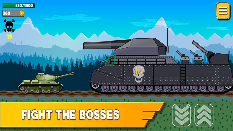 - Destrua unidades inimigas e colete recompensas para atualizar seu tanque.