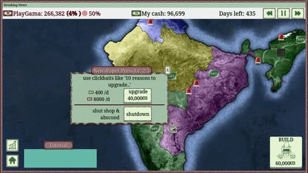 Comece sua jornada configurando sua primeira operação de falsificação. Navegue por diferentes distritos, cada um com seu próprio conjunto de desafios e recompensas. Expanda suas operações investindo em empresas de fachada, escolhendo cuidadosamente as áreas a serem exploradas, evitando a detecção. Fique atento, pois os executores estão no seu encalço, e o tempo é essencial. O objetivo final é inundar a economia com seu dinheiro falsificado e estabelecer o domínio.