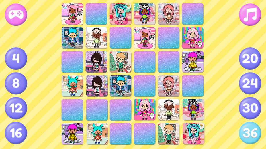 Em Toca Memory Match, os jogadores embarcarão em uma jornada para combinar pares de personagens familiares, testando suas habilidades de memória e concentração. Navegue por vários níveis, cada um oferecendo desafios e oportunidades únicos para melhorar o foco. Este jogo é adaptado para crianças de todas as idades, proporcionando um excelente ambiente para o desenvolvimento cognitivo, garantindo uma experiência divertida e interativa. À medida que as crianças progridem pelos níveis, elas encontrarão uma variedade de quebra-cabeças envolventes e personagens adoráveis, tornando cada sessão de jogo uma nova aventura. Perfeito para crianças que procuram aprimorar suas habilidades de memória em um ambiente lúdico.