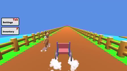 No computador, controle sua cadeira de rodas com as teclas W-A-S-D ou as setas para movimento. A tecla espaço permite que você salte sobre obstáculos. Use Tab para acessar configurações, R para restaurar sua cadeira de rodas, F para abrir seu inventário e E para interações. No telefone, utilize o joystick esquerdo para navegação, com botões adicionais na tela para saltos e interações.