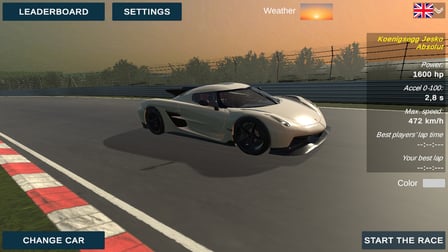 "Your Nurburgring Record" é um jogo online html5 imersivo baseado em navegador que transporta os jogadores para a lendária pista conhecida como Nurburgring Nordschleife. Este jogo de corrida desafia os entusiastas a bater os tempos de volta em um dos circuitos de corrida mais emblemáticos do mundo. Os jogadores experimentam a emoção das corridas de carros de alta velocidade enquanto testam uma seleção de hipercarros, cada um projetado com física realista para imitar o verdadeiro manuseio desses veículos poderosos. Com seus gráficos impressionantes e jogabilidade envolvente, "Your Nurburgring Record" se destaca como um simulador de corrida hardcore que visa proporcionar a experiência de condução mais autêntica na lendária pista.