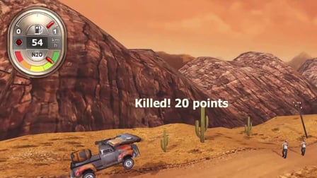 Sobreviver e alcançar o final de cada nível, navegando pelas estradas infestadas de zumbis enquanto melhora seu veículo.