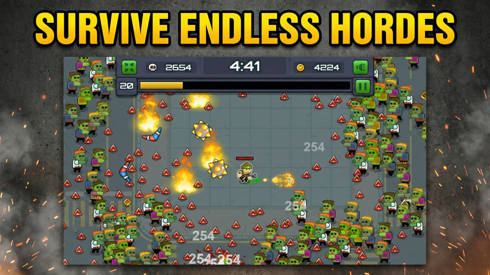 Situado em um mundo dominado pelos mortos-vivos, Zombie Hunter: Survival desafia os jogadores a suportar e sobreviver à investida implacável de zumbis. O jogo apresenta um sistema de dificuldade dinâmica, garantindo que, à medida que os jogadores progridem, eles se deparam com inimigos cada vez mais formidáveis. Os elementos chave incluem uma variedade de armas e melhorias, habilidades especiais e a gestão estratégica de recursos, todos contribuindo para uma experiência de jogo emocionante e imersiva.