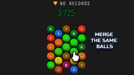 Tauchen Sie ein in die süchtig machende Welt von 1 + 1 Kugeln, wo Strategie und schnelles Denken Ihre besten Verbündeten sind. In diesem packenden Spiel musst du zwei oder mehr benachbarte identische Bälle mit einem Klick zusammenführen. Je mehr Bälle du zusammenfügst, desto höher ist deine Punktzahl und desto näher kommst du dem Aufstellen neuer Rekorde. Das Spiel ist zum Spielen verfügbar online für kostenlos sowohl auf Ihrem Telefon als auch auf Ihrem Computer. Mach dich bereit, deine Freunde auszutricksen und der ultimative Champion zu werden 1 + 1 Kugeln.