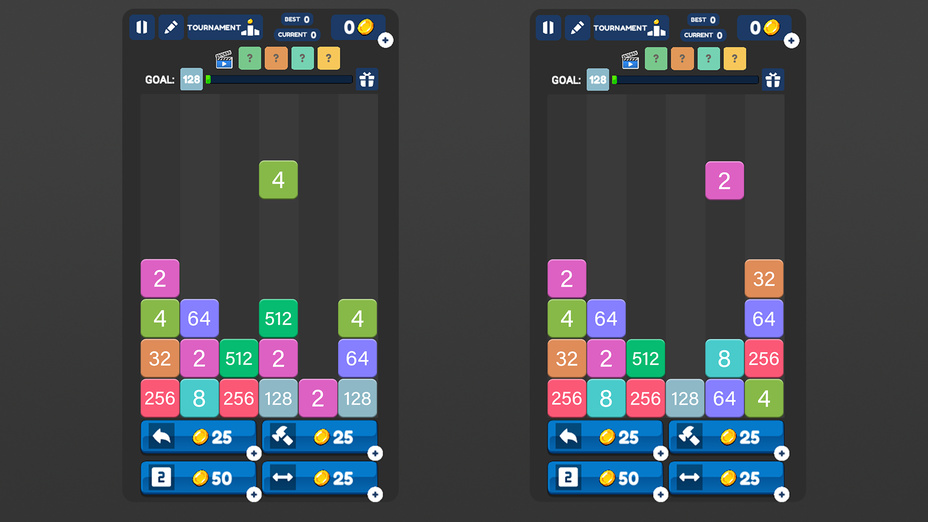 Das Spielen von 2048: Merge Blocks Up! ist einfach. Auf einem Computer verwendest du die Pfeiltasten, um die Blöcke zu verschieben. Auf deinem Handy wischst du in die Richtung, in die du dich bewegen möchtest. Das Verschmelzen von Kacheln hilft dir, größere Zahlen zu erreichen und das Spielfeld übersichtlich zu halten. Behalte die Kachel mit dem höchsten Wert im Auge und sorge dafür, dass du klug verschmilzt, um das Spiel stark am Laufen zu halten!