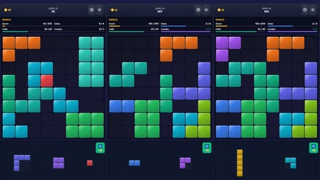 A fun Tetris puzzle where you drag blocks onto an 8x8 grid, form horizontal or vertical lines, and explode them.