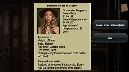 Tauchen Sie ein in die packende Welt von Eine Detektivgeschichte in dunklen Tönen, wo Geheimnisse im Schatten lauern und jede Wahl, die Sie treffen, die Erzählung prägt. Dieser online abenteuer lädt Sie ein, in die Fußstapfen einer Detektivin zu treten, die daran arbeitet, die düstere Vergangenheit einer verschwundenen Künstlerin, Irina Orlova, aufzudecken. Mit atemberaubender Grafik und einer ansprechenden Handlung bietet das Gameplay eine reichhaltige Erfahrung, die man genießen kann kostenlos.