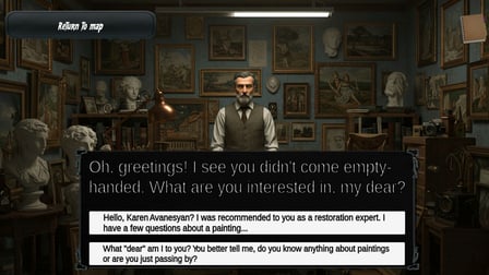 Auf Computer, klicke mit der linken Maustaste und interagiere mit Gegenständen und Charakteren. Für mobile Spieler tippen Sie einfach auf Elemente, um Dialoge zu erkunden und zu lesen. Wählen Sie Ihre Antworten während der Gespräche mit Bedacht aus, um die Untersuchung auf das gewünschte Ergebnis auszurichten.