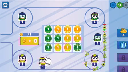 Nutze deine Maus oder deinen Finger, um auf Eier im Shop zu klicken/tippen, um sie zu kaufen. Ziehe und lasse deine Pinguine fallen, um sie zu kombinieren, wenn du zwei derselben Art hast. Klicke auf einen Pinguin, um ihn aufzurüsten, wodurch seine Verteidigungs- und Angriffsfähigkeiten verbessert werden.