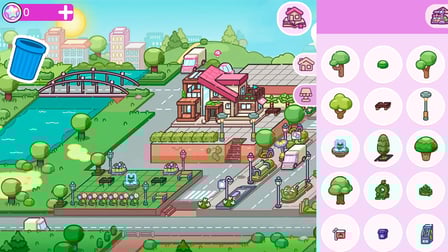 Nutzen Sie Ihre Maus oder den Touchscreen, um sich in Ihrer Stadt umzusehen, ziehen Sie Gebäude auf die Flächen und tippen Sie auf Optionen, um jedes Element anzupassen. Verbessern Sie Ihre Stadt, indem Sie Bäume verschieben, Bänke hinzufügen und Brunnen mit nur wenigen Taps bauen!