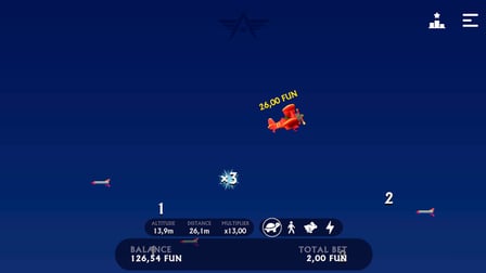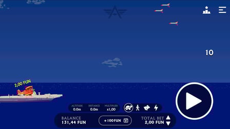 Wenn dein Flugzeug ins Wasser stürzt, verlierst du deine Wette. Aber eine sichere Landung auf dem Träger multipliziert deine Gewinne!